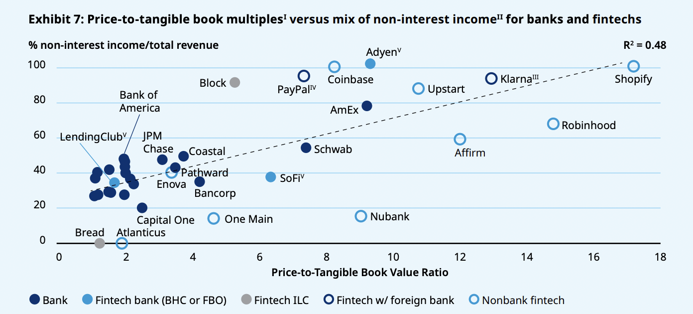 Historically, the valuation math for non-banks to become a bank didn't make sense. If you're a venture-backed tech company, you want a high revenue multiple. Banks didn't command high multiples. So companies went to lengths to prove they're not actually lenders or banks.