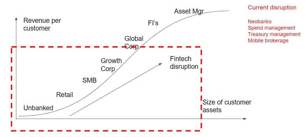 As a map, I think about financial product innovation coming to the bottom up the complexity curve. We started with unbanked consumers and have worked our way up through SMB, wealth, and corporate.