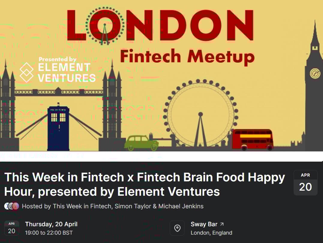 Lastly. If you’re in London for Fintech Week, come to the first EVER This Week in Fintech x Fintech Brainfood 🧠 happy hour. 👇