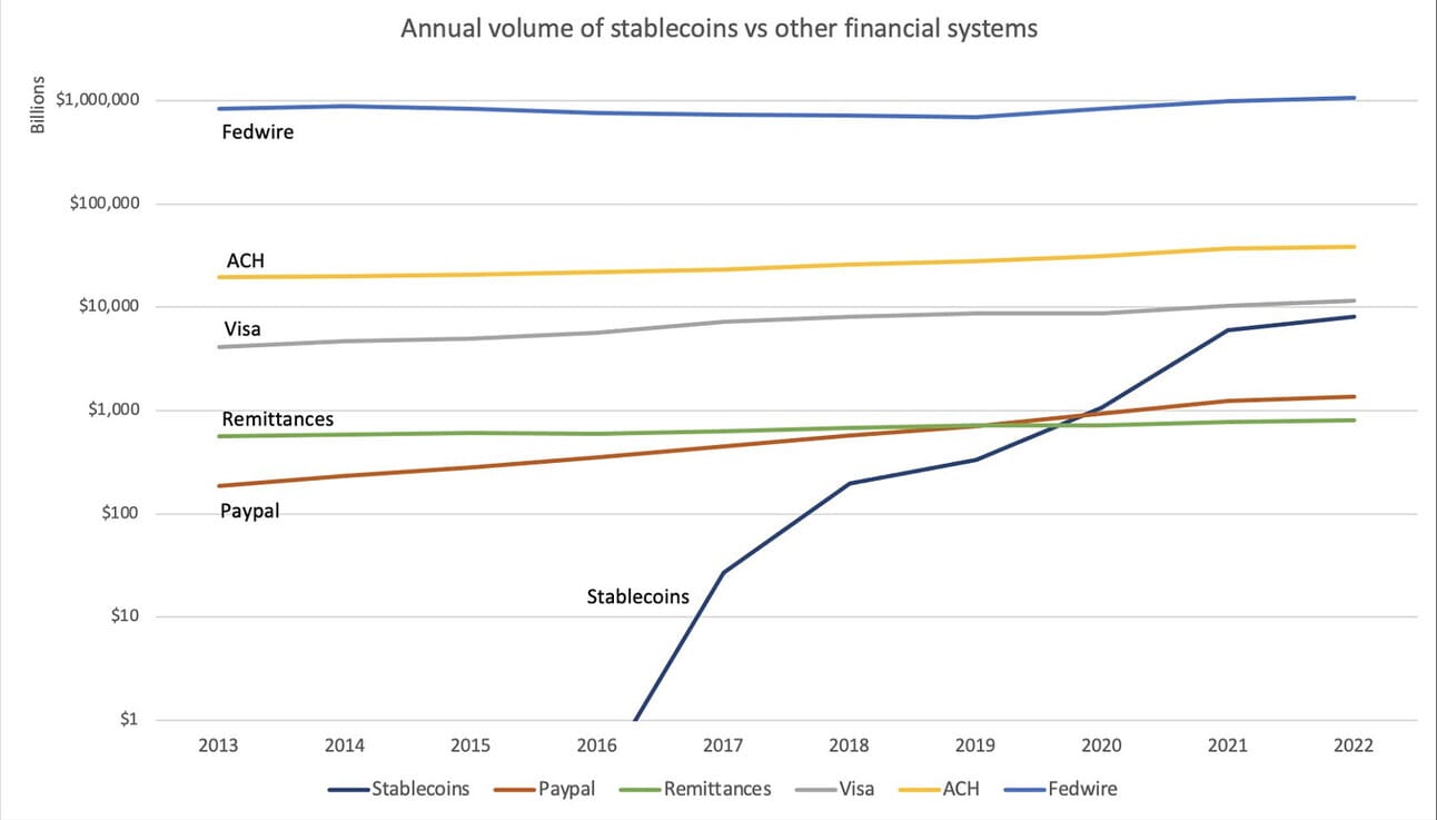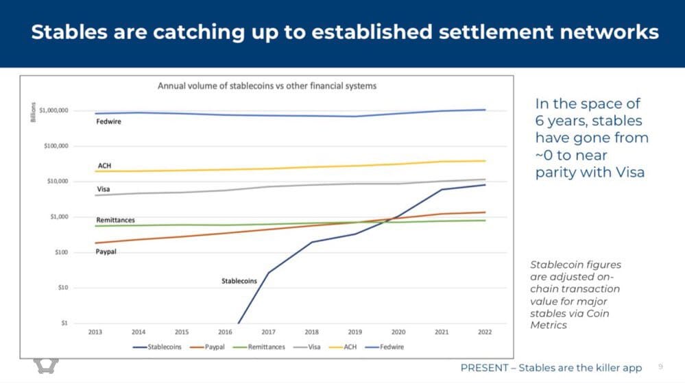 Stablecoins offer faster, lower-cost, global, instant settlement rails that are upgradable, programmable, and permissionless.