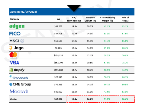 The Rule of 40 says revenue growth + EBITA should equal or exceed 40. Moody's is growing revenue by ~10 % YoY with a consistent 35%+ EBITDA. ✅