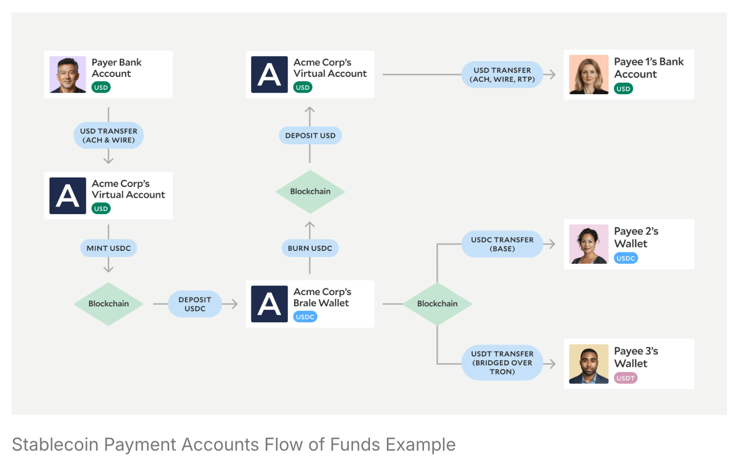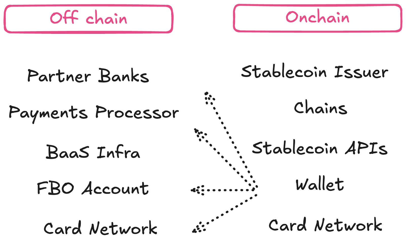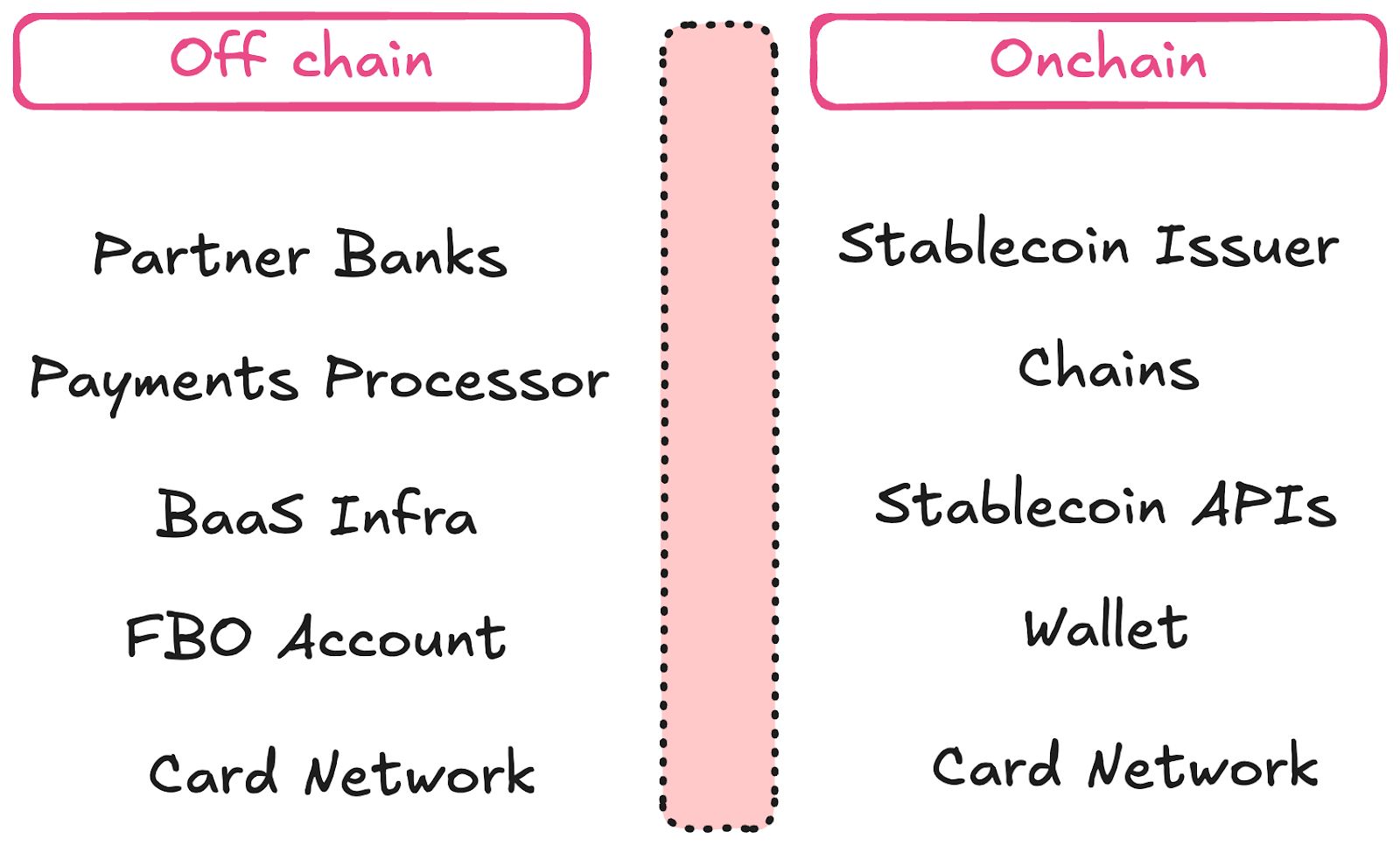 In this world, the wallet and stablecoin sit between rails, acting as an alternative to an FBO account or sub ledger. It can connect back to the existing banking system, but it can also transact onchain. Meaning that a wallet can now move money cross-border just as easily as it does domestically.