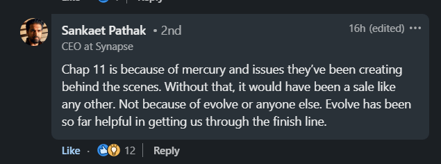 While Synapse's CEO blames Mercury for its Chapter 11 bankruptcy, the market model has changed. A sale would have happened whether Mercury was being litigious or not. Even if Synapse had decent revenue, the BaaS model itself is in question. How much can it grow with this much regulatory push back? (Narrator: It can’t, that’s why Treasury Prime and Unit are pivoting)